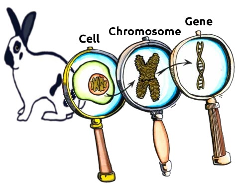 The (English) breed is defined by its phenotype (physical traits). This is the observable and expressed traits that result from the interactions between the rabbit's genes and its environment. Any rabbits can carry and inherit the English spotting genes. In the example below the English breed is used.