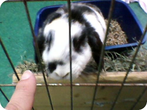 A lady that was wanting to adopt out her 3 month old grey lop. It turns out she had bought him from a breeder who said he "was a she." She already had a male and wanted a female for him. Turns out all they did was fight. She only found out when she took "her" in to be spayed. The Vet told her she was a he and that was the cause of all the fighting. When we met and picked up BunnyBoy, her old mom was very very sad and did not really want to give him up. Even the mom's boyfriend/husban was sad. We were lucky to find him. He is very sweet and listens well.