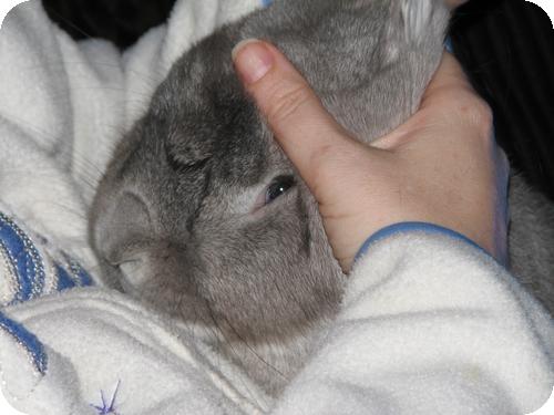 We were looking at maybe getting a 3rd bunny. We saw Grant and visited him twice at two different events. He was a big sweet Mini-Lop. "This special guy overheats and needs an ice bottle to lie up against when he has hop time in the house." We are not home during the day so this might have been a problem. We were glad when both Grant & Freckles found their forever homes.