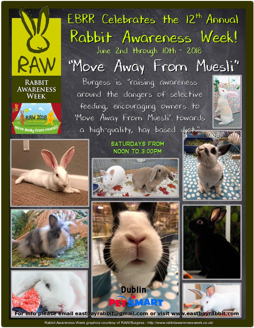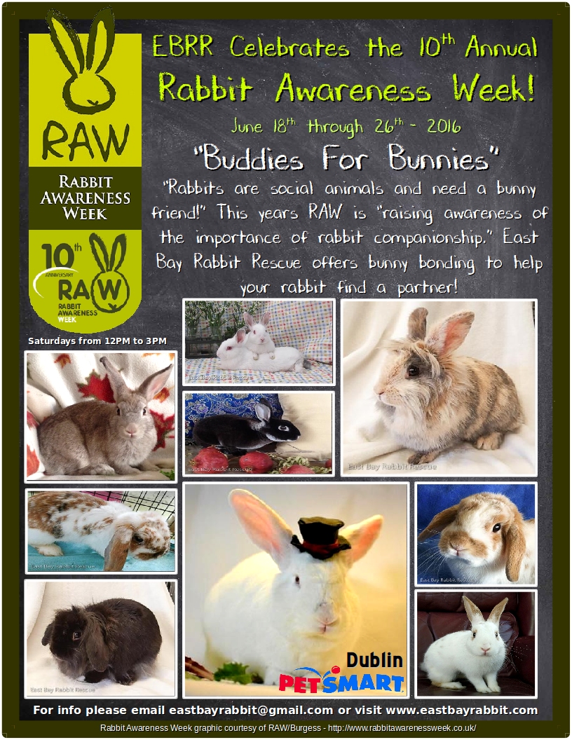 Rabbit Awareness Week is an "annual campaign that aims to highlight the health and welfare of Britain's bunnies." - source. RAW was started in 2007 and is the newest event to help & celebrate rabbits. Currently it's mainly celebrated in the UK.