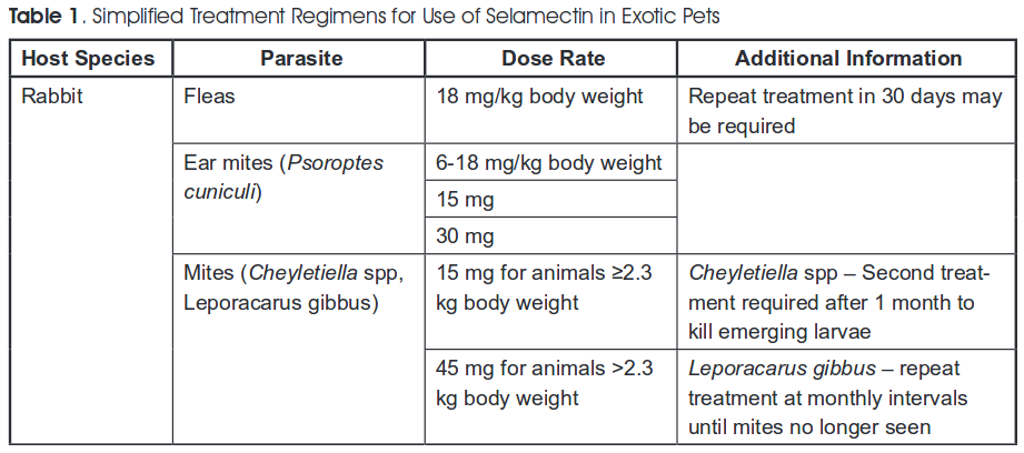 Rabbits & Selamectin + Sarolaner The European Medicines Agency (CVMP) assessment reports the following on rabbits: